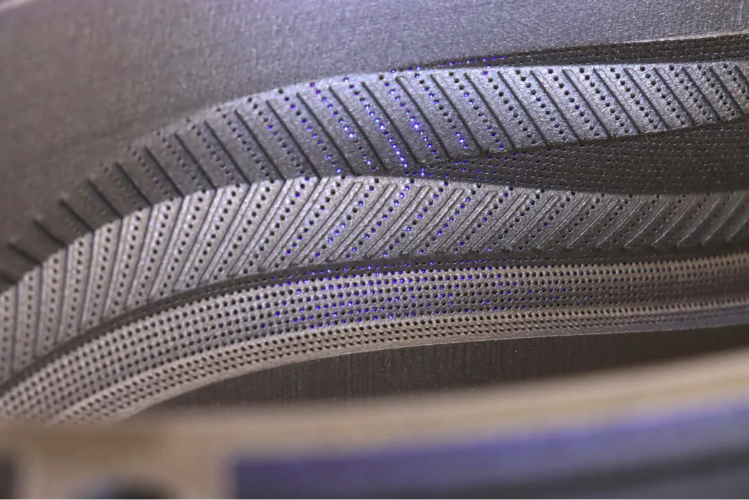 成型精度:高動態激光器,基于動態路徑規劃與高精度時序控制,配合多振鏡協同控制技術,實現仿生蜂窩結構的微米級成型精度,穩定打印質量,確保成品的一致性與可靠性,最小孔洞可達0.05mm,滿足鞋底紋理對表面細節的高要求?。